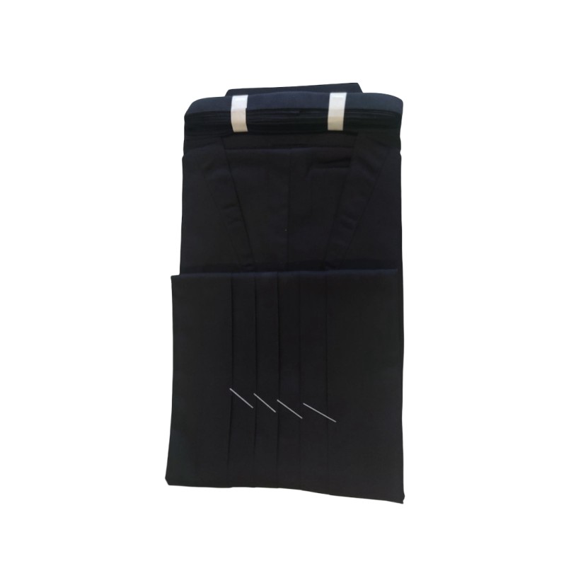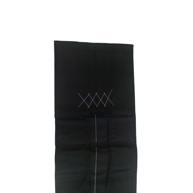 Para un ajuste perfecto, el Hakama está asegurado con cuatro ataduras; dos ataduras más largas unidas a cada lado en la parte delantera y dos ataduras más cortas unidas a cada lado de la parte trasera.